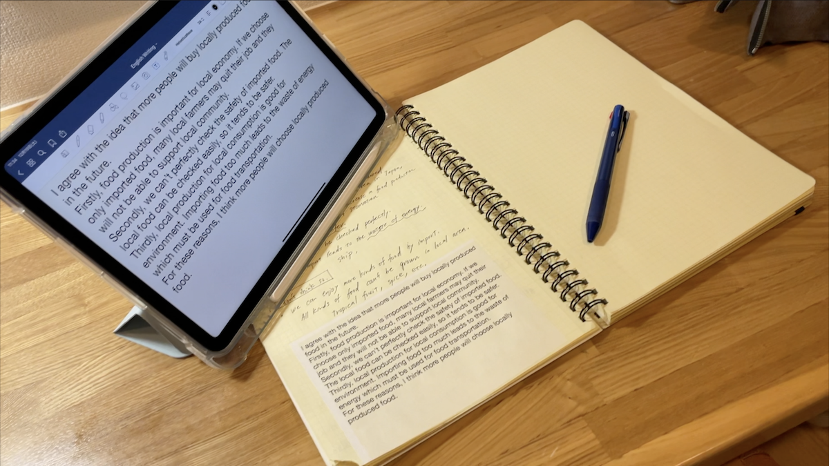 ところが、半年ほど前に状況が変わってきて、職場では嬉しいことにiPad Proの一番大きい12.9インチを貸与してもらうことができました。体幹トレーニングのビデオ撮影に携わっているので、それに関する映像チェックとか、それ以外にも、ipad本体を持ち帰らないという条件で、仕事に必要なものに関しては、僕のiCloudと同期をとったアプリを使ってもよいということになりました。要は、仕事に関することに関しては、ほぼ自分のiPadと同じような感覚で使うことができるようになりました。