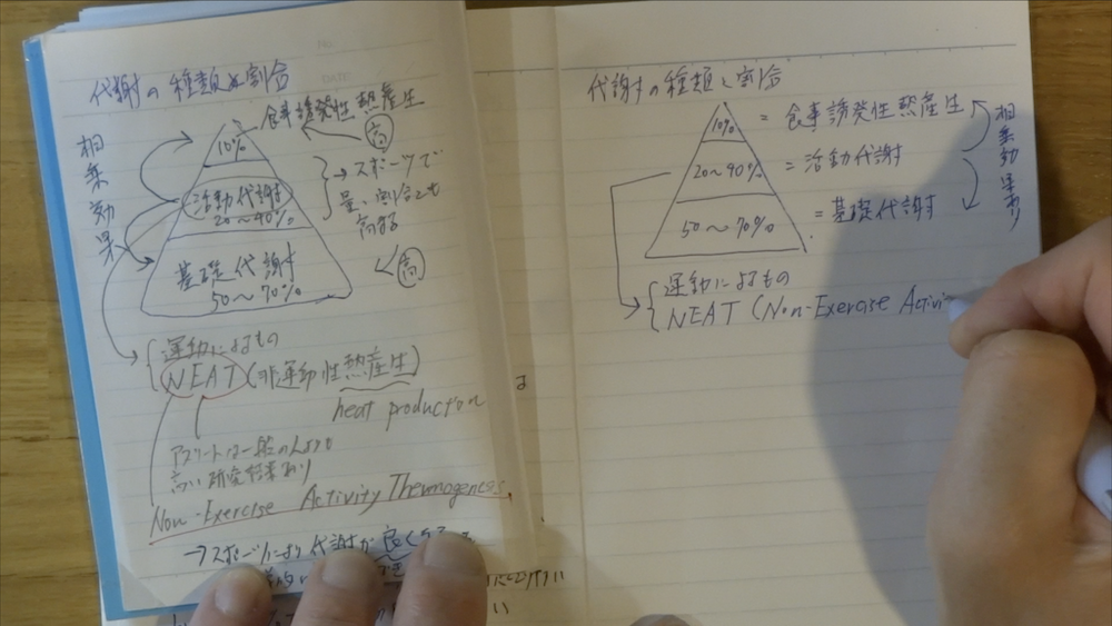 では、何を書いているのか。基本的に何でも書きますが、一番多いのは仕事中に気づいたことや学んだこと、覚えておきたいことです。僕の職場はスポーツ系なので、「体力、トレーニング、体調管理」などのメモが多くなります。これらのメモはiPhoneに音声入力することもありますが、図やイラストを使うことが多いので、手書きで書いたほうが手軽だったりします。